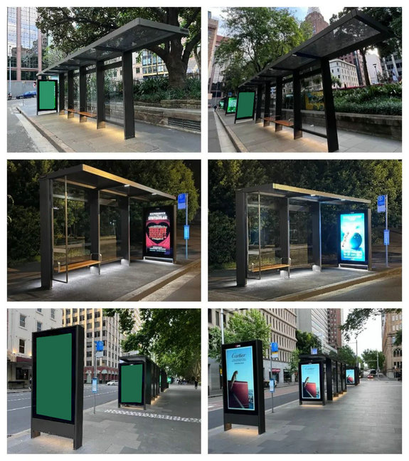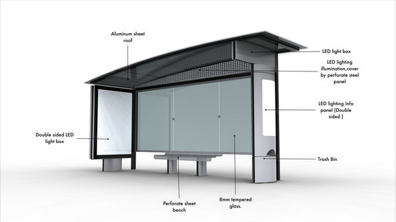 > Customized intelligent aluminum profile bus station bus shelter billboard light box bus station